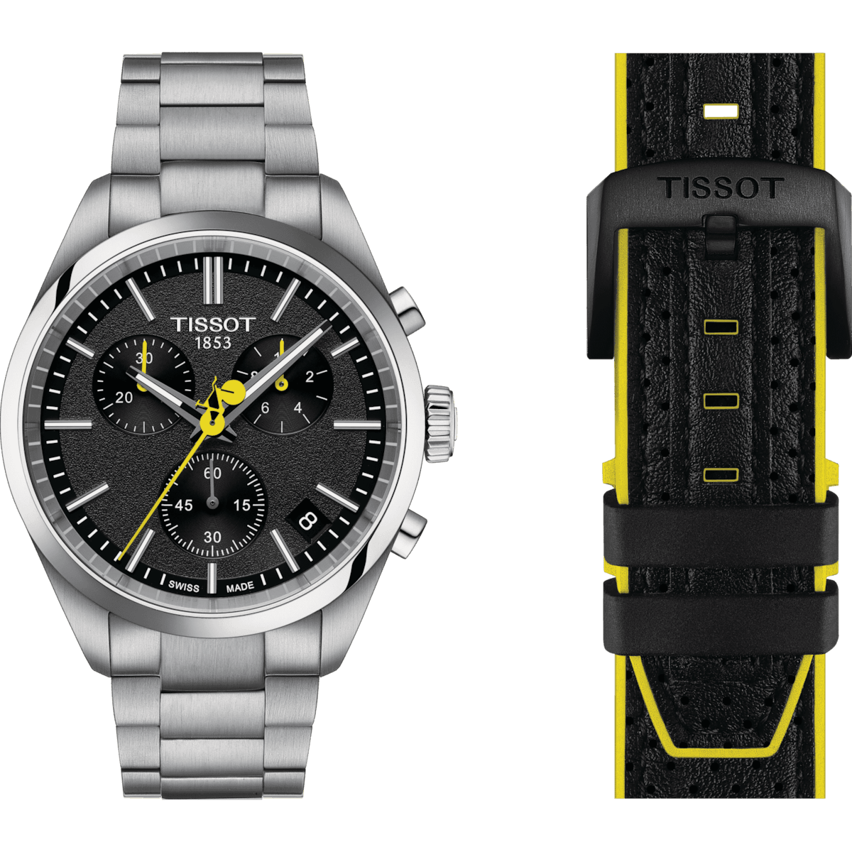 De veelzijdigheid van de PR100 wordt versterkt door een metalen band met drie rijen en een vlindergesp. Een secundaire zwarte band uit twee materialen maakt gebruik van de textuur van fietsstuurgrepen en heeft kleuren die lijken op die van de Tour de France.