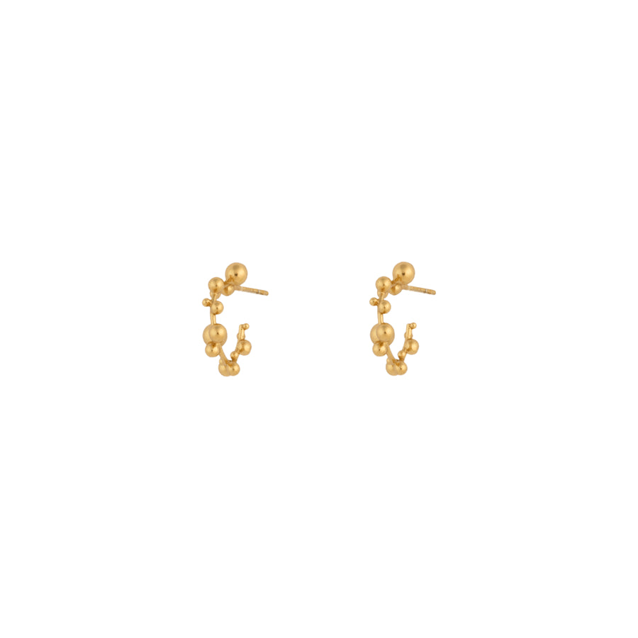 Orb Chronicles Hoops zijn geïnspireerd op de onderwaterbubbels die sierlijk door het water bewegen totdat ze het oppervlak van de oceaan breken. Deze oorbellen zijn bezet met belletjes in verschillende maten, waardoor een eenvoudige en elegante oorring ontstaat die zowel modern als tijdloos is. Het 18-karaats vergulde oppervlak geeft een luxueus tintje en de delicate vorm maakt ze perfect voor zowel het dagelijks leven als speciale gelegenheden.