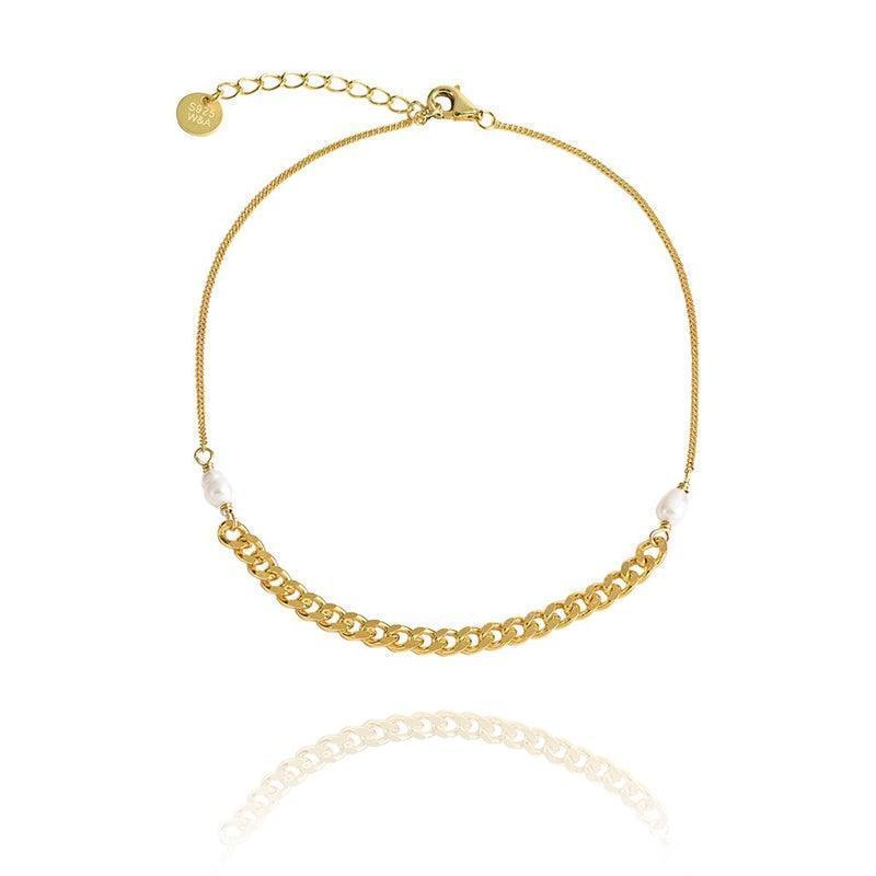 Superleuk en vrouwelijk enkelkettinkje in verguld zilver met een prachtige roze opaal van Wioga. De mooie mix tussen de twee kettingdiktes geeft de enkelketting een mooie en unieke uitstraling. Mix het met andere enkelbandjes voor een persoonlijkere uitstraling.