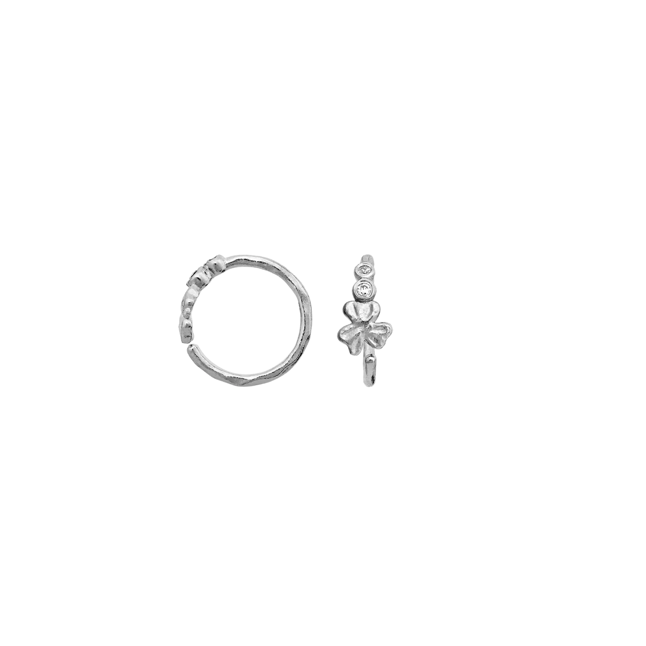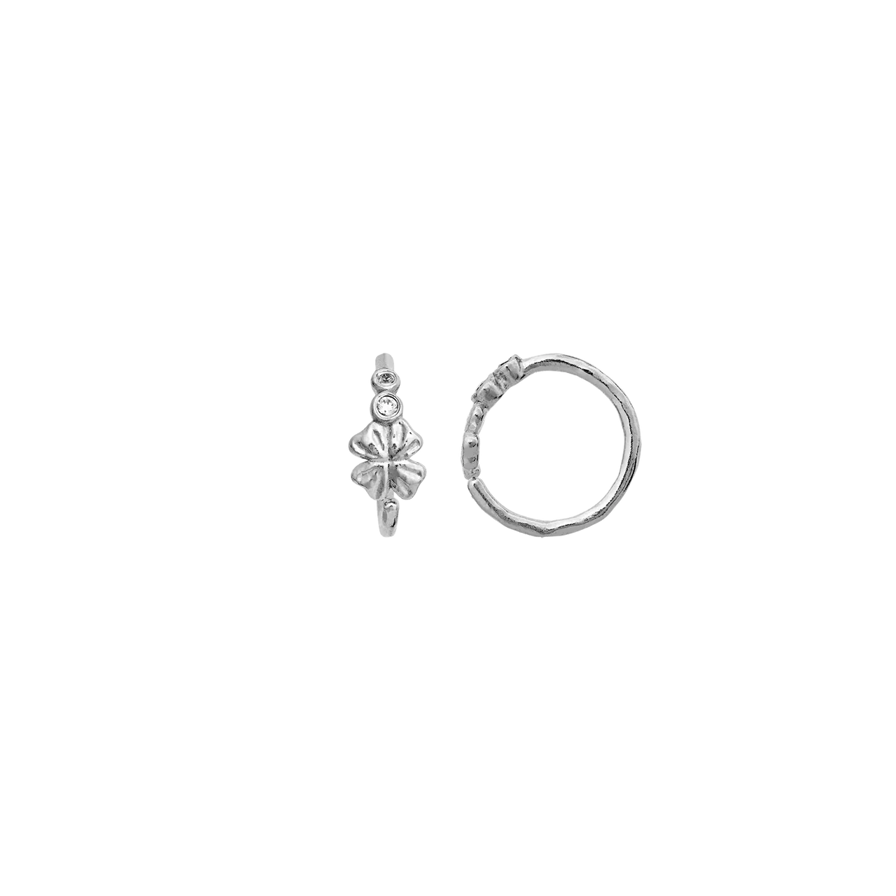 De kleine klavertjes hebben een elegante en lichte uitstraling in het koele zilver, terwijl de sprankelende witte zirkonia's een discrete schittering toevoegen. De oorbellen zijn op zichzelf perfect als vrouwelijk en opvallend statement - of samen met andere zilveren sieraden voor een persoonlijke laag-op-laag look. Onderdeel van de Maanesten SS26-collectie met een focus op symboliek en fijne details.