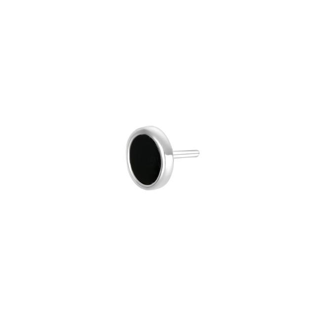 Enkele oorbel in glanzend zilver met een zwarte Onyx steen